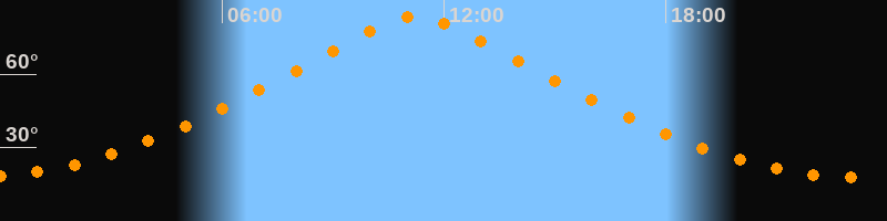 | Höchster Stand (Kulmination) | 11:14 Uhr (h = 83,5°) |