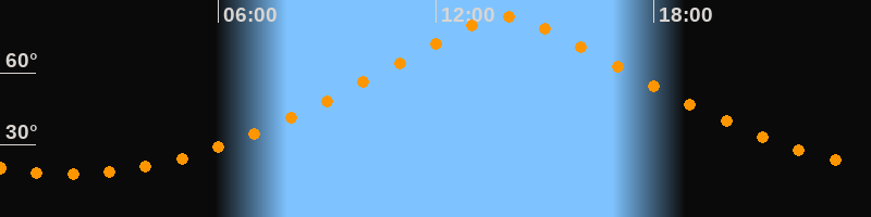 | Höchster Stand (Kulmination) | 13:53 Uhr (h = 83,5°) |