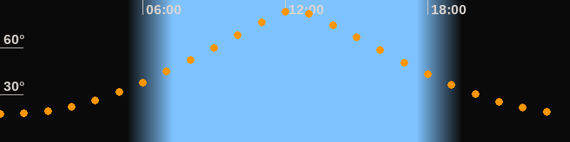 | Höchster Stand (Kulmination) | 12:23 Uhr (h = 83,5°) |