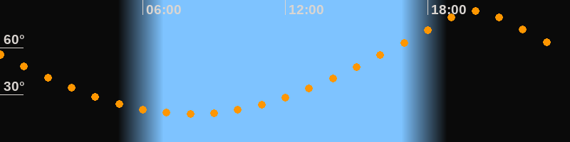 | Höchster Stand (Kulmination) | 20:00 Uhr (h = 83,5°) |