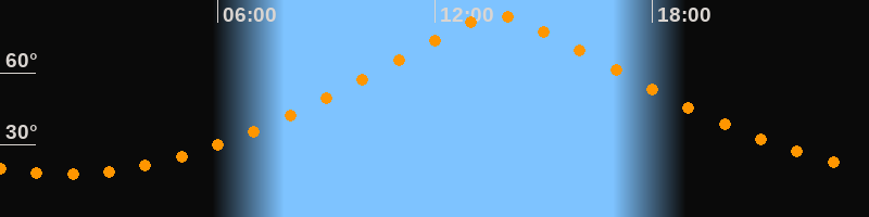 | Höchster Stand (Kulmination) | 13:43 Uhr (h = 83,5°) |