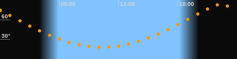 | Höchster Stand (Kulmination) | 22:19 Uhr (h = 83,5°) |