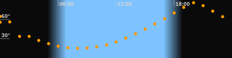 | Höchster Stand (Kulmination) | 20:09 Uhr (h = 86,4°) |