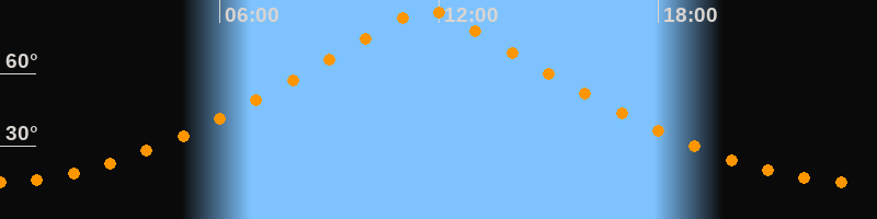 | Höchster Stand (Kulmination) | 11:39 Uhr (h = 86,4°) |