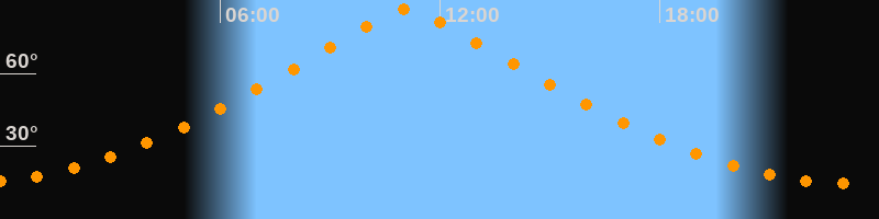 | Höchster Stand (Kulmination) | 11:07 Uhr (h = 86,4°) |