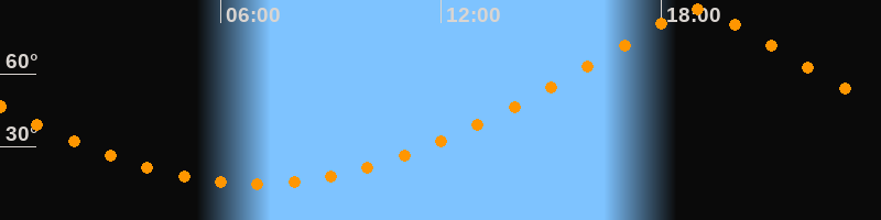 | Höchster Stand (Kulmination) | 18:58 Uhr (h = 86,4°) |