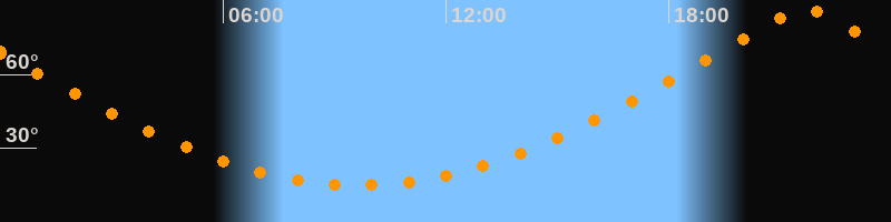 | Höchster Stand (Kulmination) | 21:40 Uhr (h = 86,4°) |