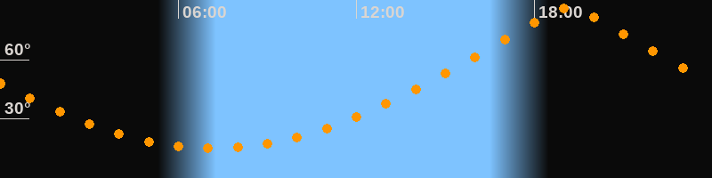| Höchster Stand (Kulmination) | 19:09 Uhr (h = 86,4°) |