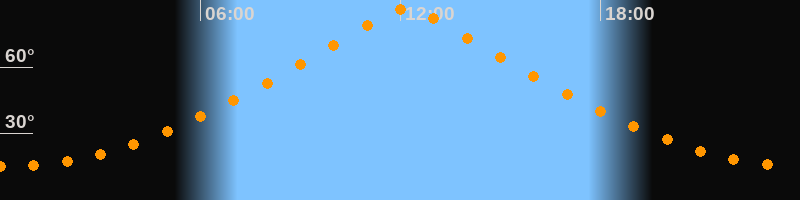 | Höchster Stand (Kulmination) | 12:10 Uhr (h = 86,4°) |