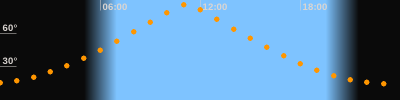 | Höchster Stand (Kulmination) | 11:08 Uhr (h = 86,4°) |