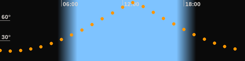 | Höchster Stand (Kulmination) | 13:02 Uhr (h = 86,4°) |