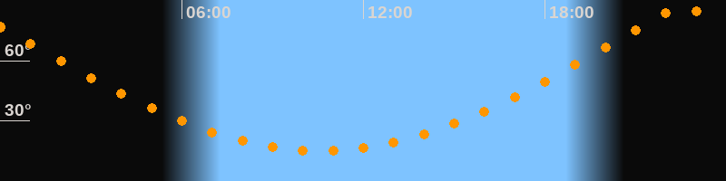 | Höchster Stand (Kulmination) | 22:34 Uhr (h = 86,4°) |