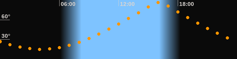 | Höchster Stand (Kulmination) | 16:04 Uhr (h = 86,4°) |