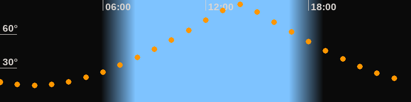 | Höchster Stand (Kulmination) | 13:54 Uhr (h = 86,4°) |