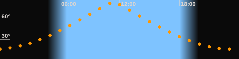 | Höchster Stand (Kulmination) | 11:21 Uhr (h = 86,4°) |