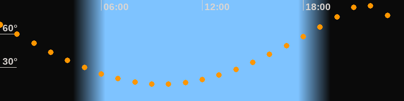 | Höchster Stand (Kulmination) | 21:35 Uhr (h = 86,4°) |