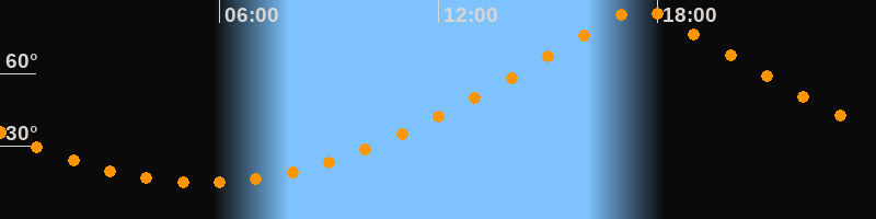 | Höchster Stand (Kulmination) | 17:31 Uhr (h = 86,4°) |