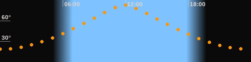 | Höchster Stand (Kulmination) | 11:54 Uhr (h = 82,7°) |