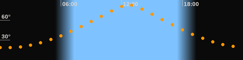 | Höchster Stand (Kulmination) | 12:40 Uhr (h = 82,7°) |