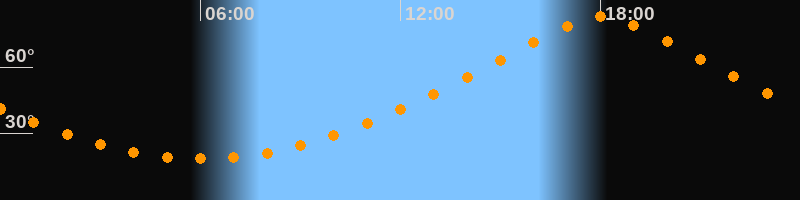 | Höchster Stand (Kulmination) | 18:01 Uhr (h = 82,7°) |