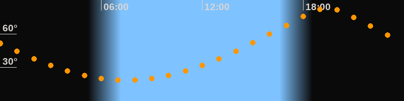 | Höchster Stand (Kulmination) | 19:27 Uhr (h = 82,7°) |