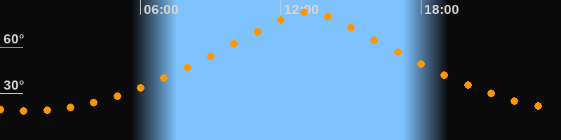 | Höchster Stand (Kulmination) | 13:09 Uhr (h = 82,7°) |