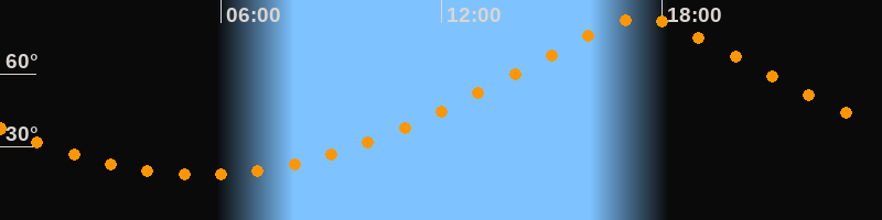 | Höchster Stand (Kulmination) | 17:27 Uhr (h = 82,7°) |