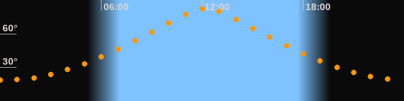 | Höchster Stand (Kulmination) | 12:12 Uhr (h = 82,7°) |