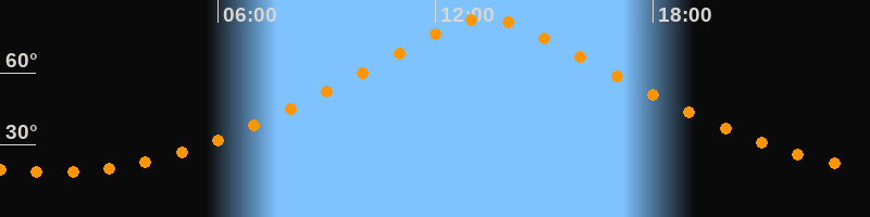 | Höchster Stand (Kulmination) | 13:24 Uhr (h = 82,9°) |