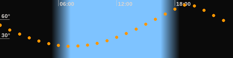 | Höchster Stand (Kulmination) | 19:22 Uhr (h = 82,9°) |