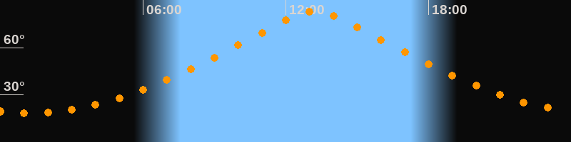 | Höchster Stand (Kulmination) | 13:13 Uhr (h = 82,9°) |