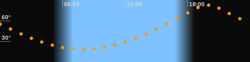 | Höchster Stand (Kulmination) | 19:56 Uhr (h = 82,9°) |