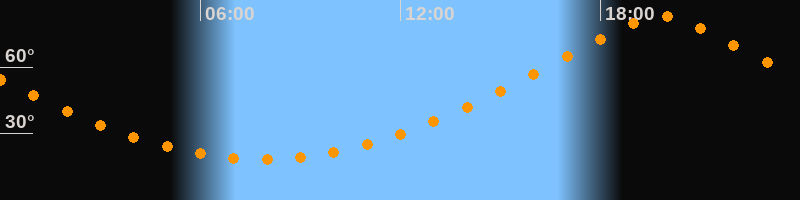 | Höchster Stand (Kulmination) | 19:49 Uhr (h = 82,9°) |