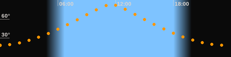 | Höchster Stand (Kulmination) | 11:32 Uhr (h = 82,9°) |