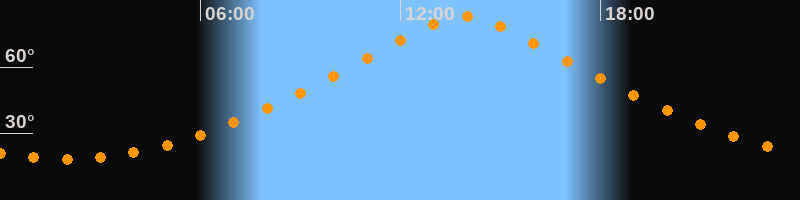 | Höchster Stand (Kulmination) | 13:55 Uhr (h = 82,9°) |