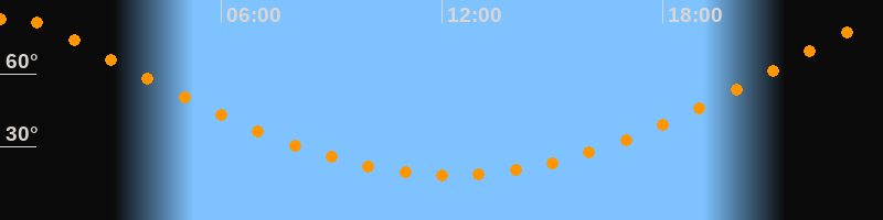 | Höchster Stand (Kulmination) | 00:16 Uhr (h = 82,9°) |