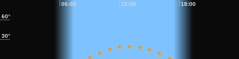 Höchster Stand (Kulmination)12:55 Uhr (h = 19,5°)