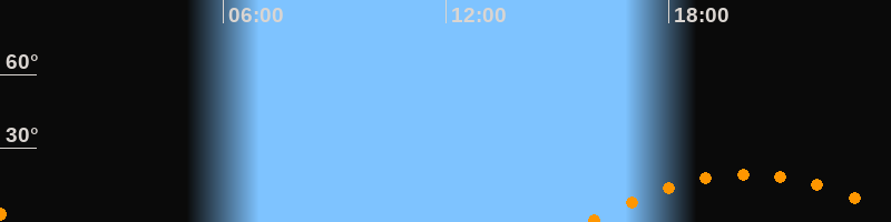 Untergang00:27 Uhr im Südwesten (αAz = 238,6°)