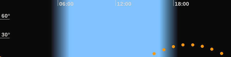 Untergang23:51 Uhr im Südwesten (αAz = 238,6°)
