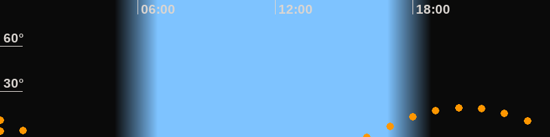 Untergang00:36 Uhr im Südwesten (αAz = 238,6°)