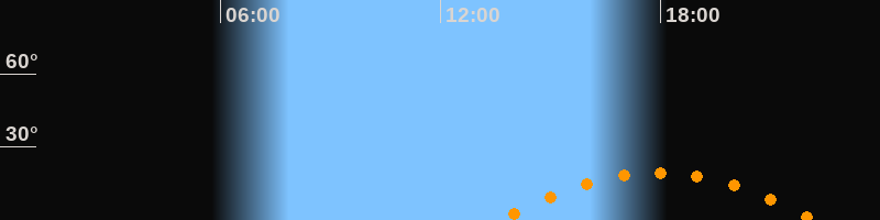 Höchster Stand (Kulmination)17:56 Uhr (h = 19,5°)