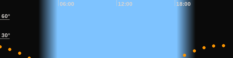 Aufgang18:21 Uhr im Südosten (αAz = 121,4°)