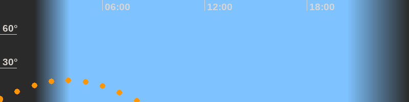 Aufgang23:33 Uhr im Südosten (αAz = 121,4°)