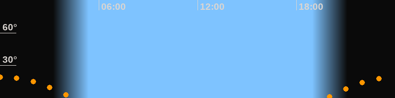 Höchster Stand (Kulmination)00:03 Uhr (h = 19,5°)