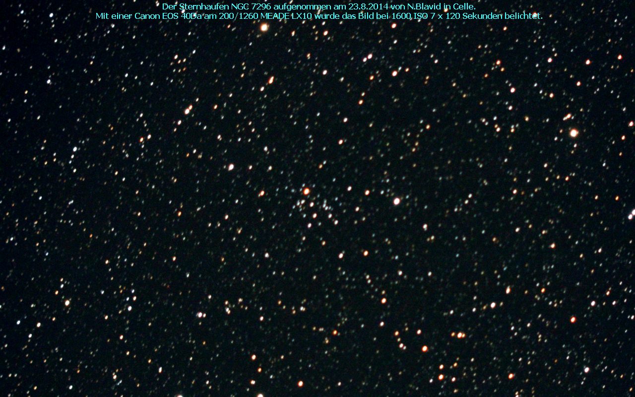 NGC 7296 ist ein ein offener Sternhaufen vom Typ ??. Entdeckt wurde das Objekt am 14. Oktober 1787 von Friedrich Wilhelm Herschel.
