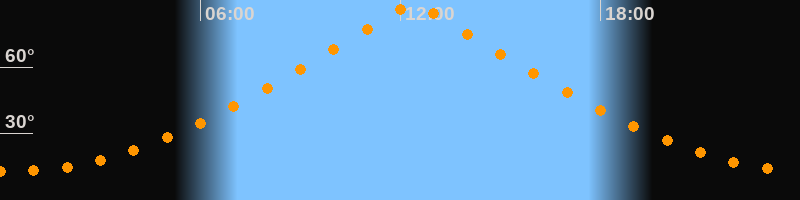 | Höchster Stand (Kulmination) | 12:23 Uhr (h = 88,4°) |