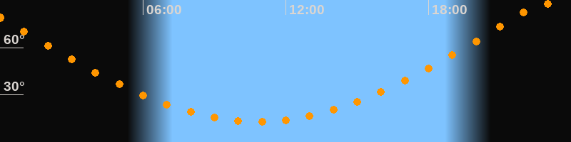 | Höchster Stand (Kulmination) | 22:48 Uhr (h = 88,4°) |