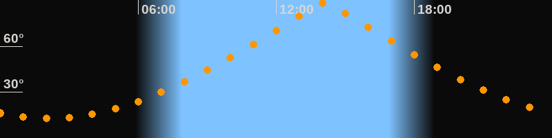 | Höchster Stand (Kulmination) | 14:06 Uhr (h = 88,4°) |