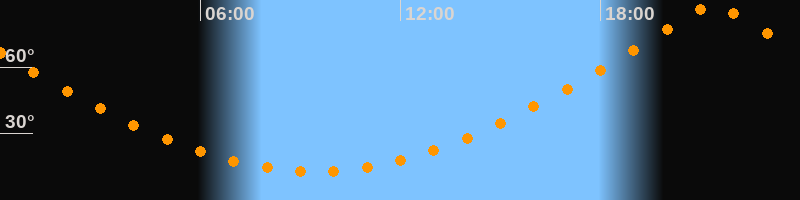 | Höchster Stand (Kulmination) | 21:24 Uhr (h = 88,4°) |