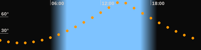 | Höchster Stand (Kulmination) | 14:26 Uhr (h = 88,4°) |